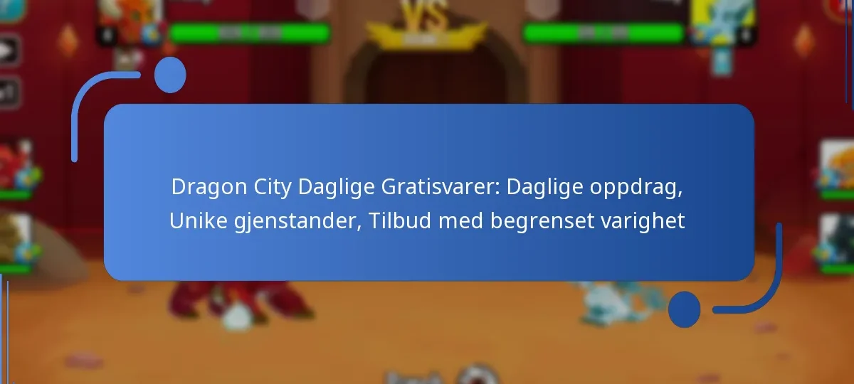 I Dragon City gir daglige gratistilbud spillerne muligheten til å forbedre spillopplevelsen sin gjennom belønninger som kan kreves inn hver dag. Dette inkluderer daglige oppdrag, unike gjenstander og tidsbegrensede tilbud, alle designet for å gi verdifulle ressurser og muligheter for vekst. Ved å effektivt håndtere oppgaver og forstå kravene til oppdragene, kan spillerne maksimere belønningene sine og nyte en rikere spillopplevelse.